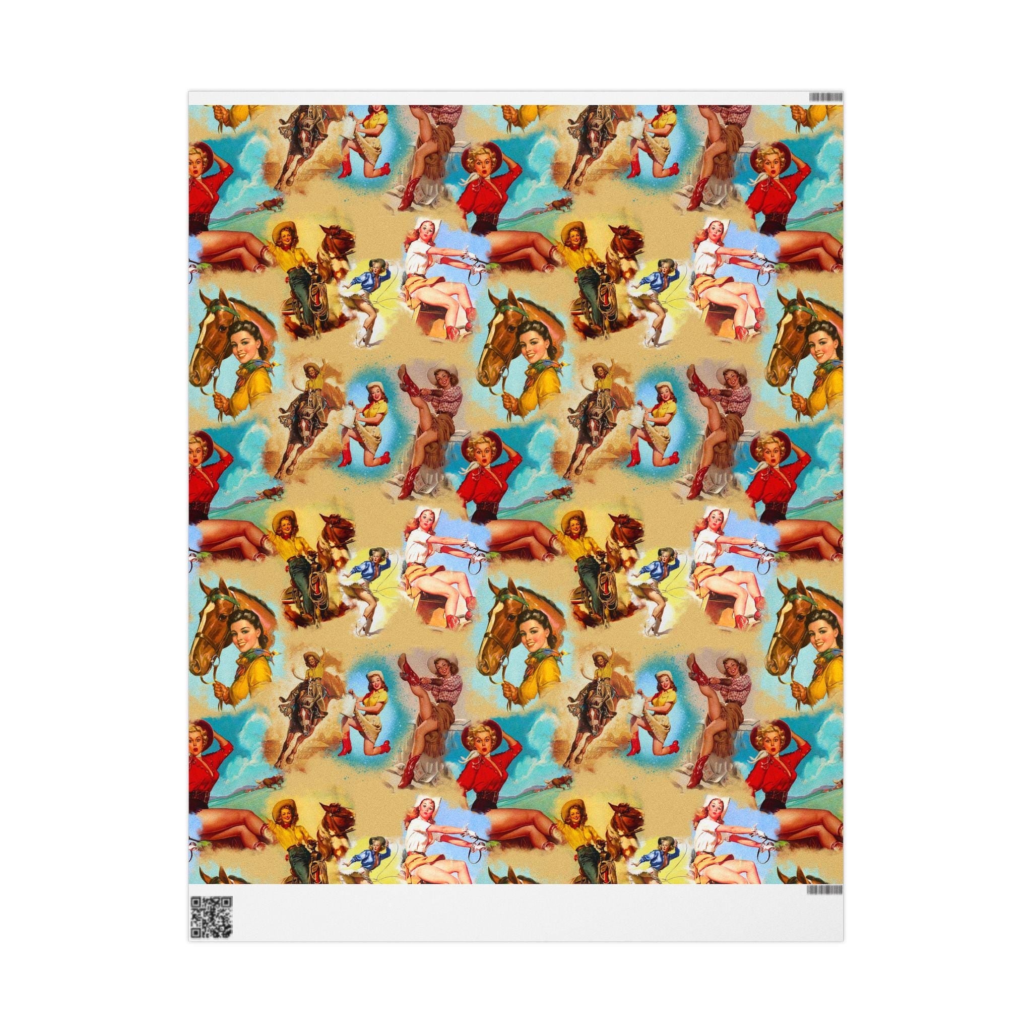 Vintage Cowgirl Wrapping Paper, Retro Western Gift Wrap for Birthdays