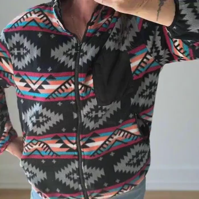 Aztec Fleece Zip-Up Jacket: Western Boho Outerwear