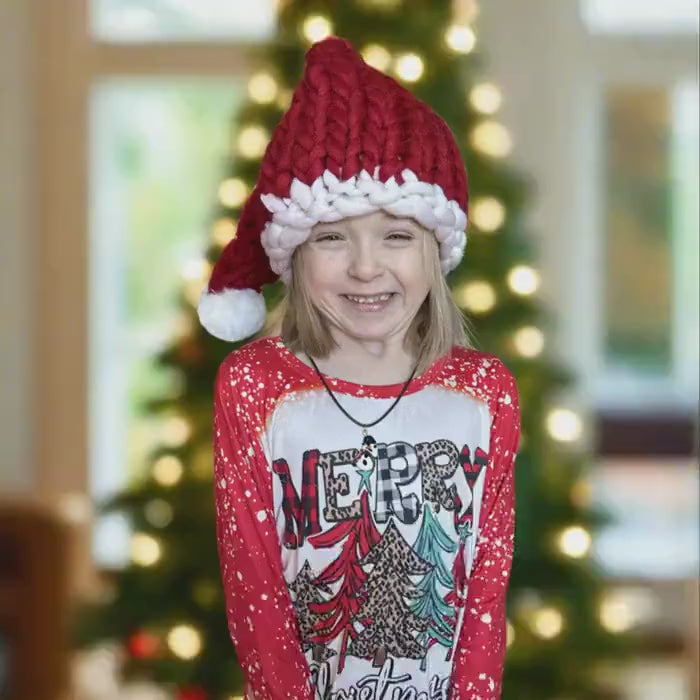 Add a playful touch to your holiday wardrobe with our chunky knit Santa Hat! Handcrafted from thick, ultra-soft yarn, this festive hat is designed to keep you warm while spreading Christmas cheer. Measuring 18 inches tall with a stretchy 9-inch brim, it offers a cozy, versatile fit for toddlers through adults. Whether you're dressing up for a holiday party, snapping cute family photos, or using it as festive decor, this Santa hat is a must-have for the season.