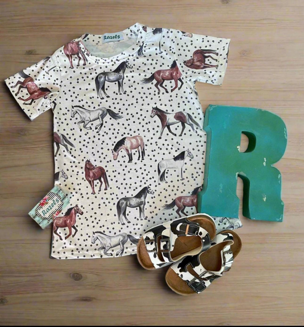 Girls Horse T-Shirt Dress | Polka Dot Horse Print Dress