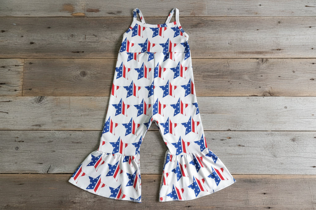 Patriotic Star Bell Bottom Jumpsuit | Girls 4th of July Outfit