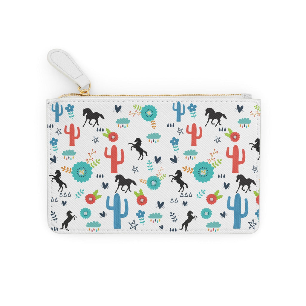 Personalized Cowgirl Mini Clutch - Running Horses & Rainbow Cactus Print