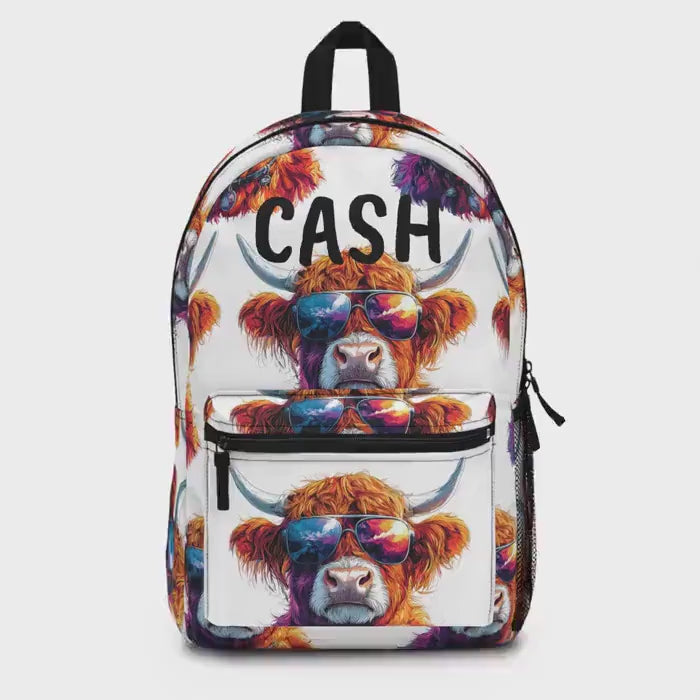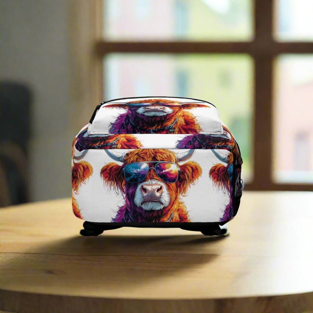 Meet the sassiest cow on campus! This personalized Highland Cow Backpack features our cheeky sunglass-wearing bovine ready to bring major vibes to your school days, weekend trips, or even summer festivals. Whether you're a cowboy, cowgirl, or just love some farm-fueled fun, this bag is a total standout.