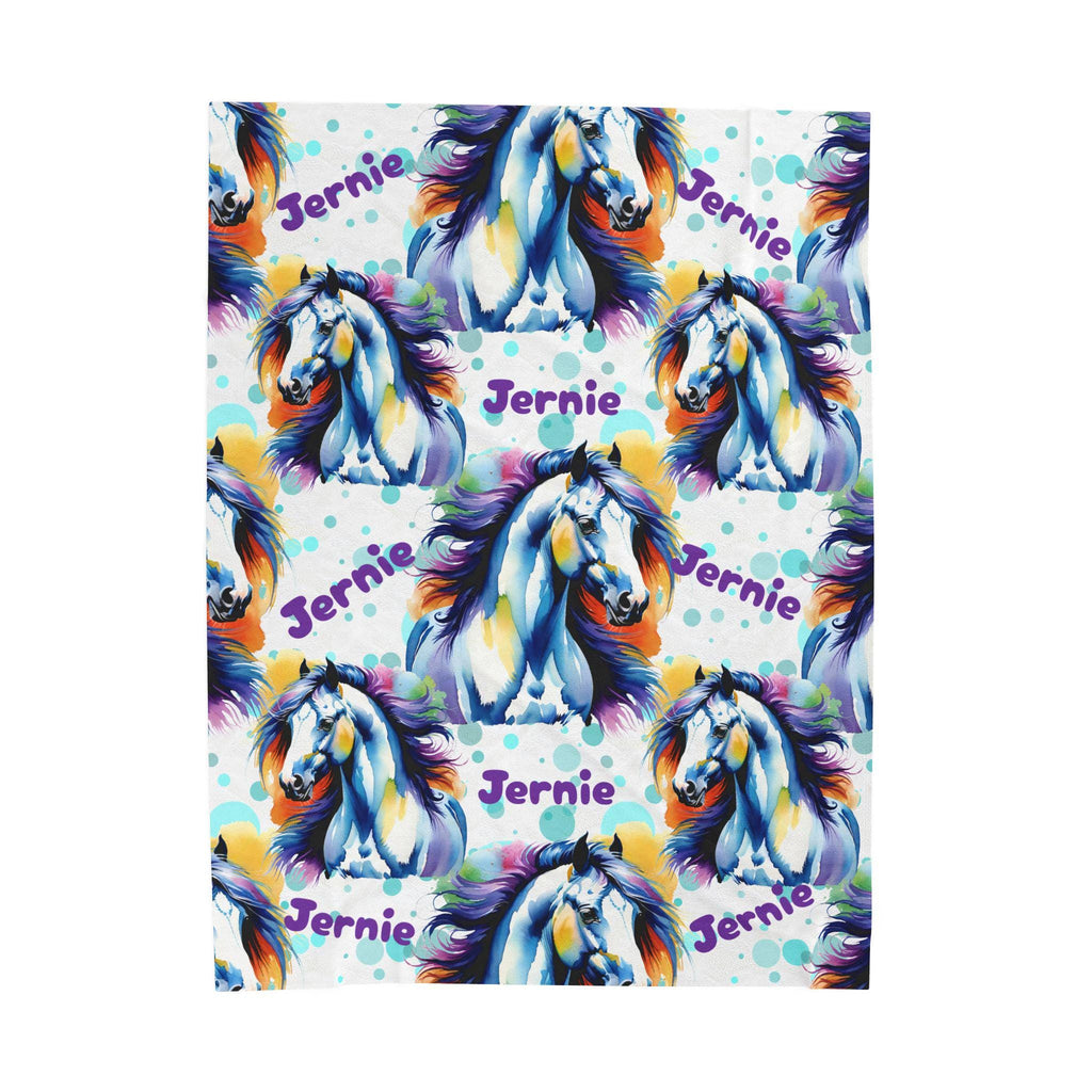Rainbow Horse Blanket | Custom Turquoise & Purple Cowgirl Throw | Personalized Horse Lover Gift