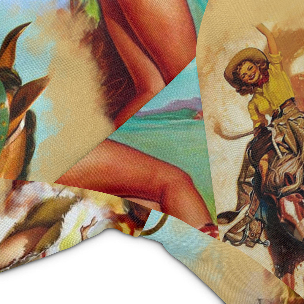 â All-over retro pinup cowgirl print with bold, crisp color