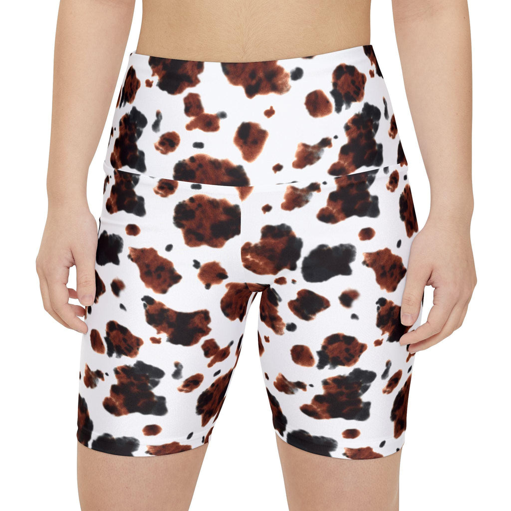 Brindle Cow Print Workout Shorts: Western Cowgirl Activewear, Cowprint