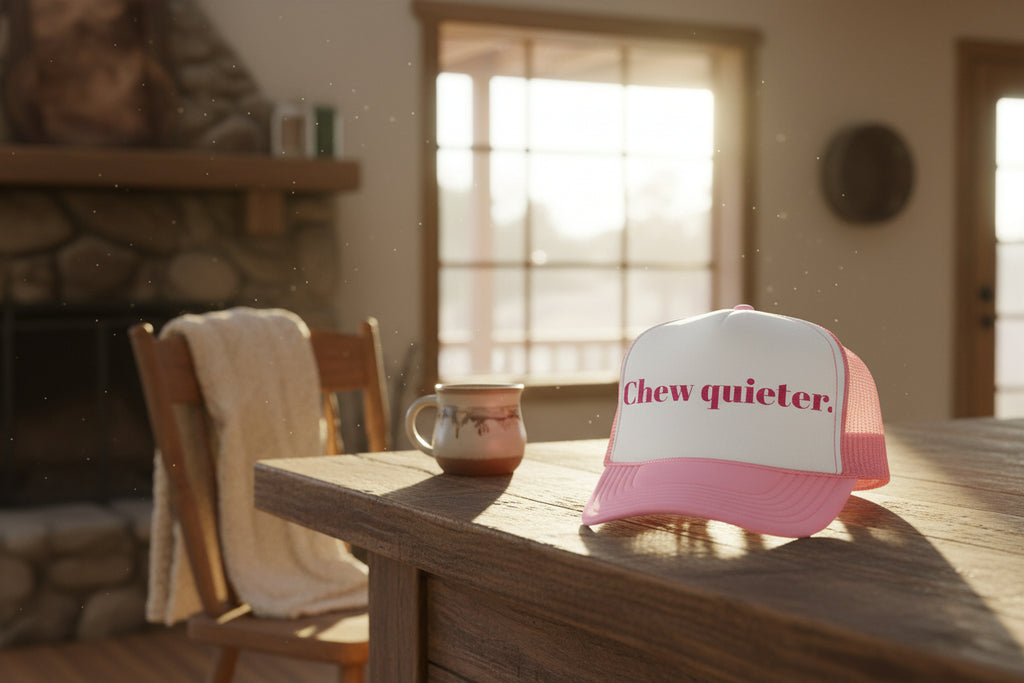 The CHEW QUIETER foam trucker hat delivers peak sarcasm in a classic, comfortable fit. Embroidered for durability and designed to turn heads, this hat is perfect for people with loud opinions, louder snacks, or zero patience.