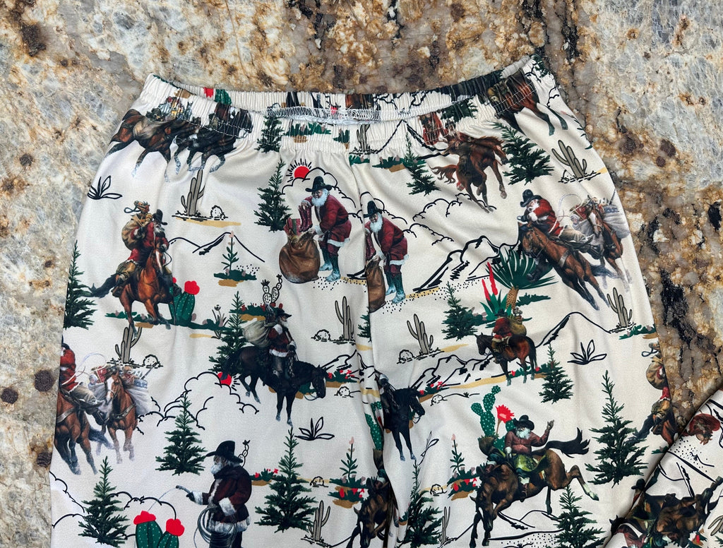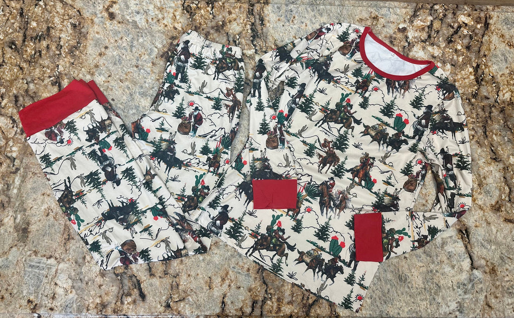 Get ready for the holidays with Razels' exclusive Cowboy Christmas Pajamas! These high-quality, well-made PJs are designed for comfort and style, featuring Cowboy Santa delivering packages on his best horses—though one looks a little broncy! Perfect for all our Cowboys and Cowgirls, young and old alike! 🤠💗