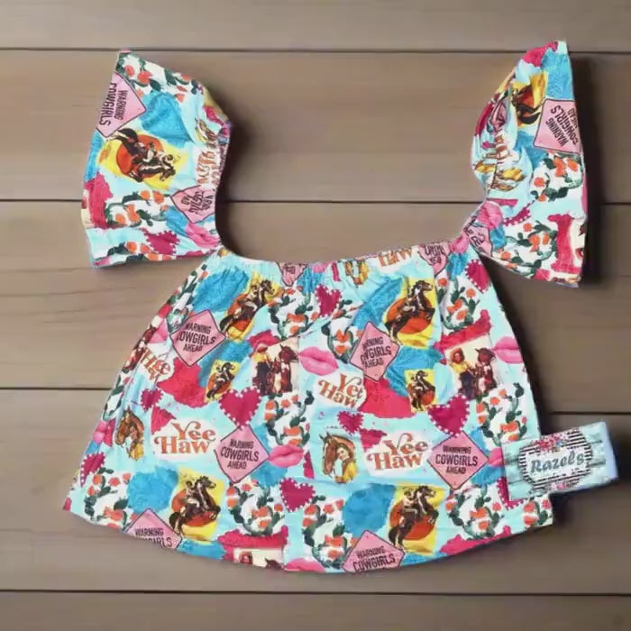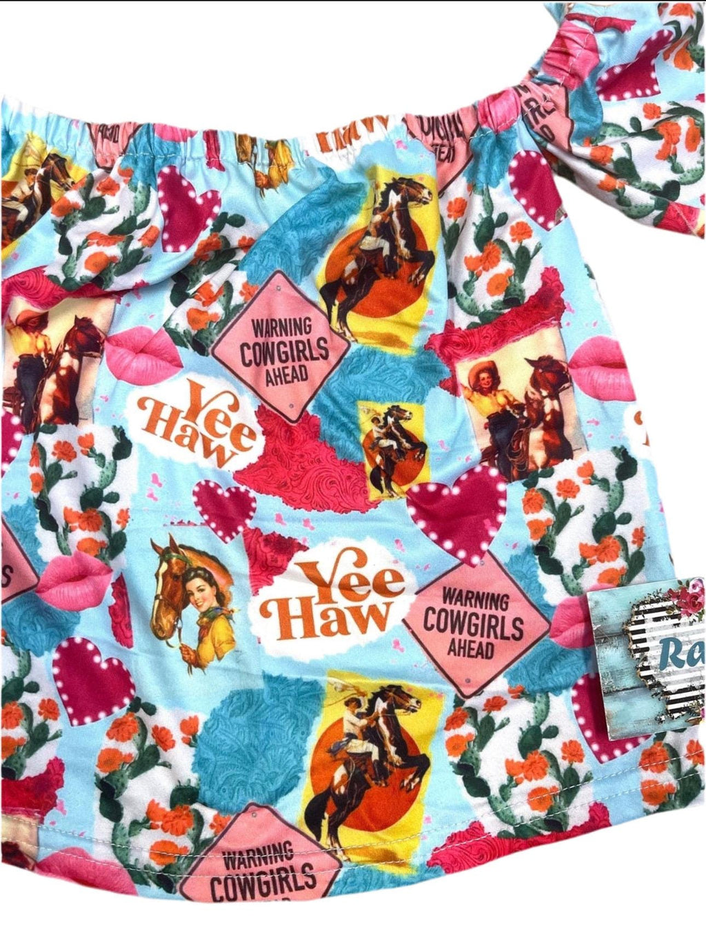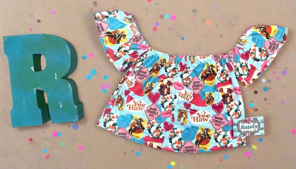 Saddle up in style with our Yeehaw Cowgirl Cold Shoulder Top! This playful western shirt is made for little wranglers who love to shine—whether it's for a cowgirl birthday bash, summer rodeo, or everyday adventure on the prairie 🐎🌵