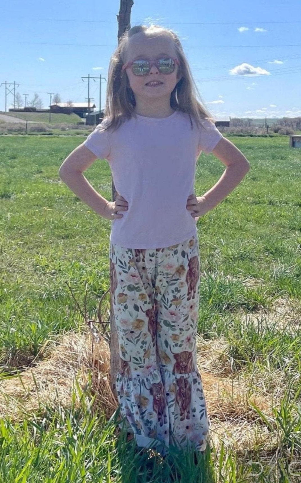 Celebrate your little cowgirl’s love for Highland cows with these darling bell bottoms! Featuring a whimsical mix of florals and fuzzy Highlanders, these pants bring a touch of Western charm to everyday outfits. 🌸🐮