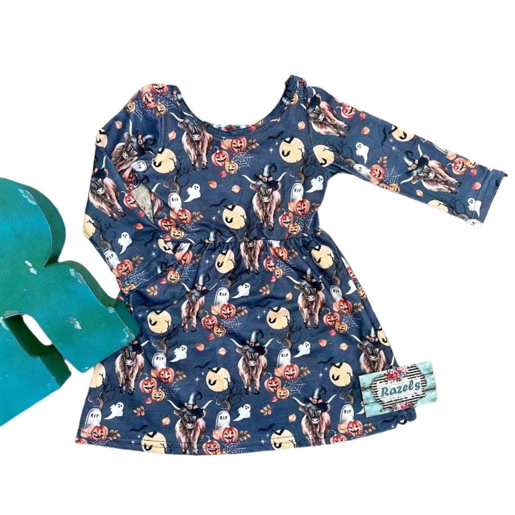 🎃 Western Halloween Dress for Girls – Highland Cow Outfit 🐮👻