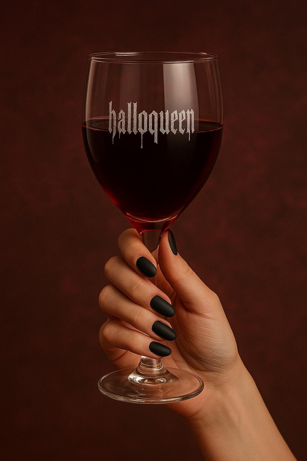 👑 Halloqueen Engraved Wine Glass – For the Queens of Halloween! 🎃🍷