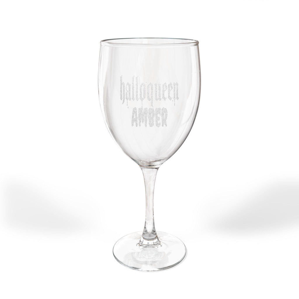 Halloqueen Engraved Wine Glass, Personalized Halloween Wine Glass Gift