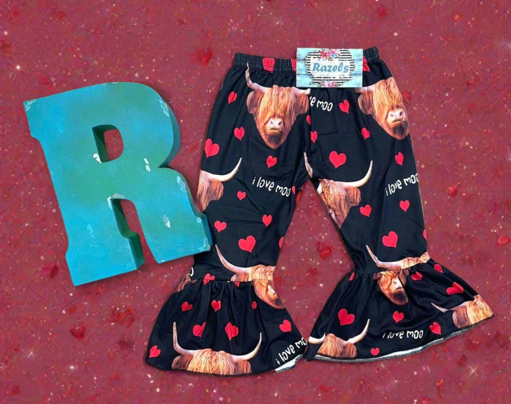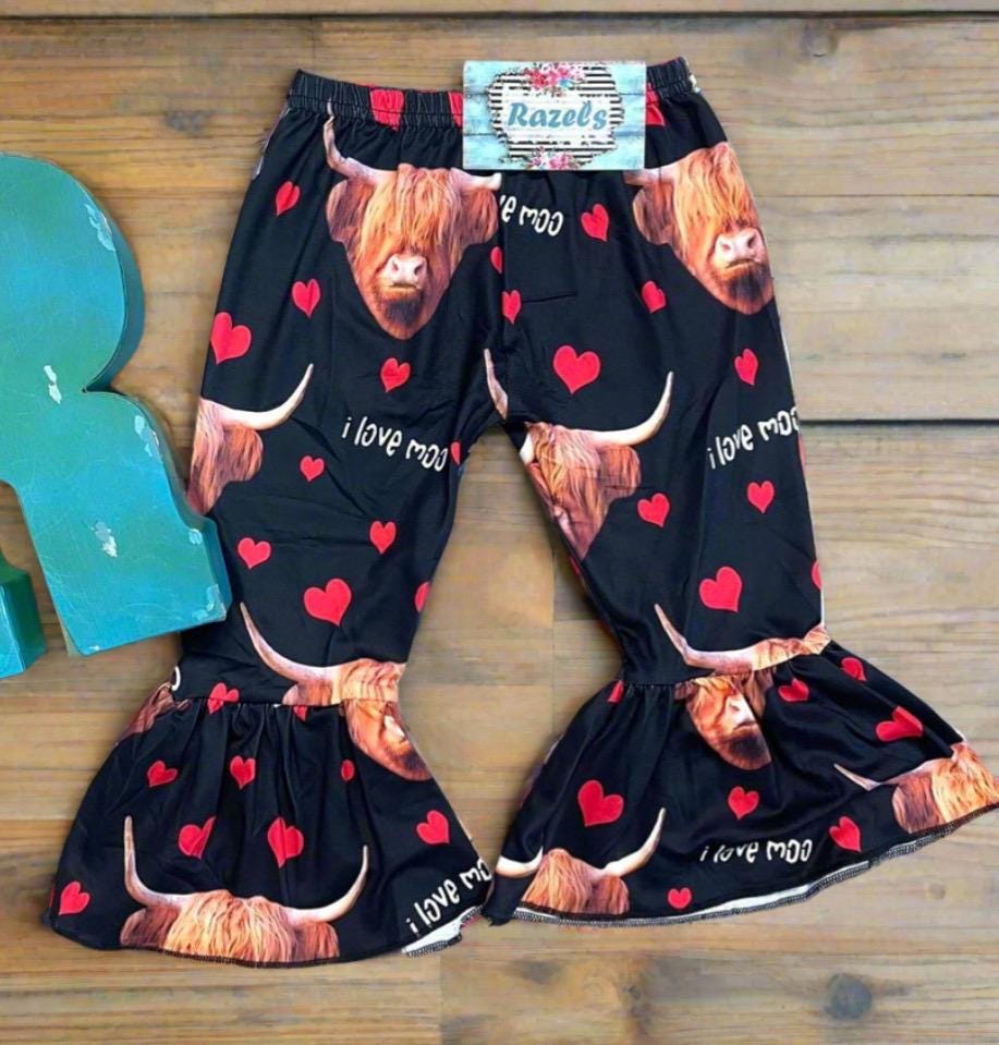 Highland Cow Bell Bottoms: I Love Moo Valentine's Pants