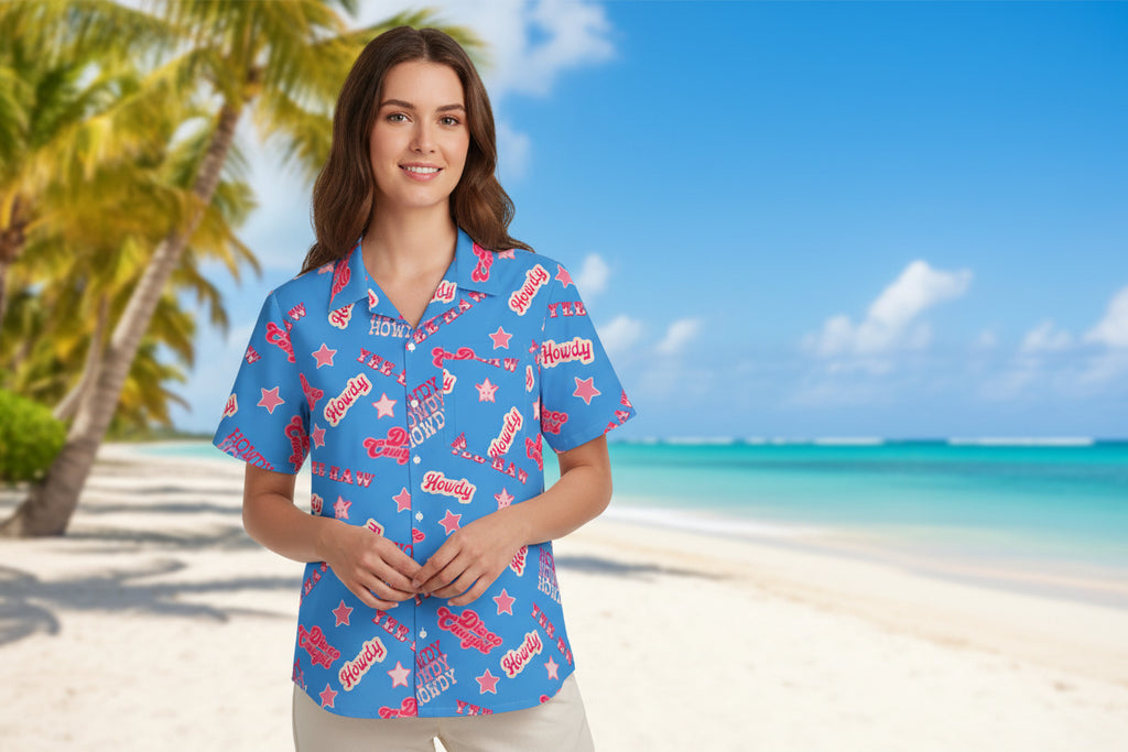 This unisex short-sleeve shirt has a relaxed Hawaiian-style fit with just the right flow—laid-back enough for a beach day, cool enough for the rodeo, and cute enough for any summer snap. Whether you're out two-steppin' or sipping something cold under the sun, this shirt brings the attitude.