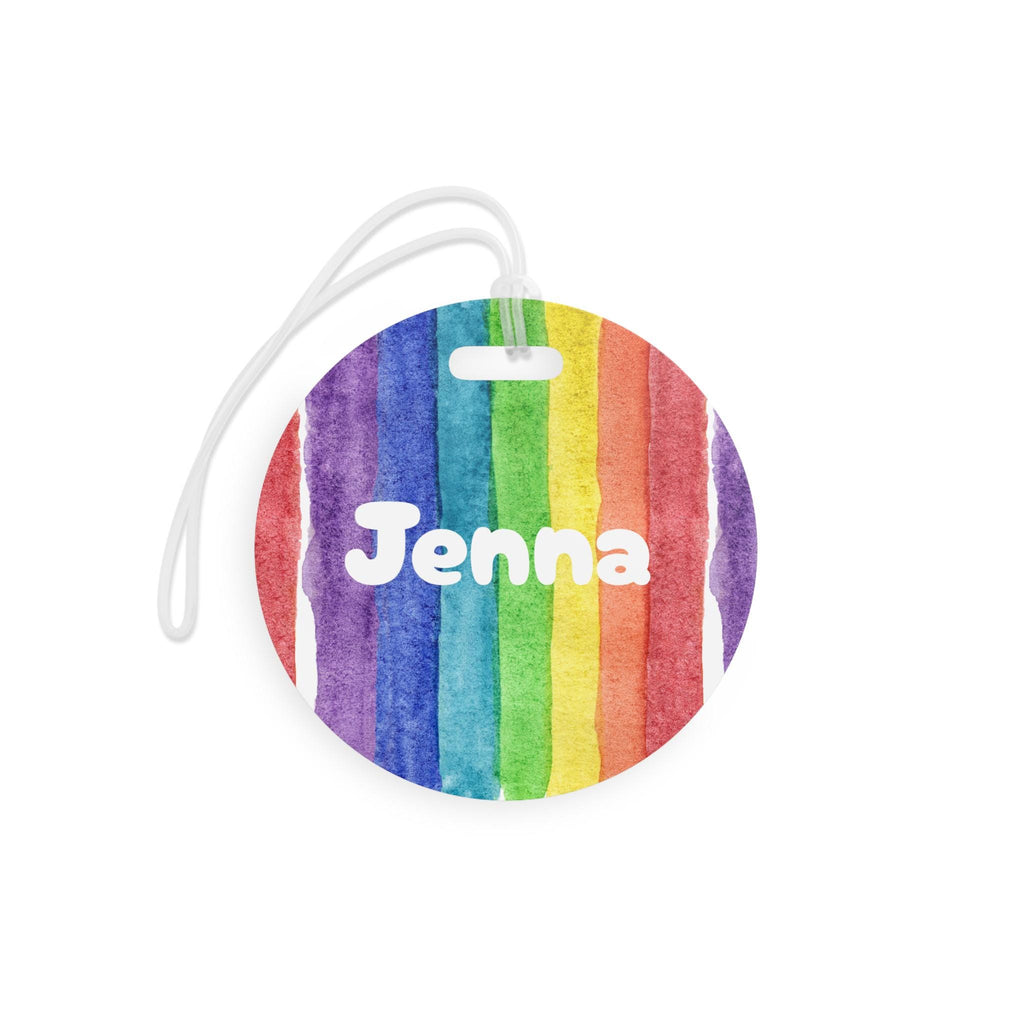 Personalized Rainbow Tie-Dye Bag Tag: Glossy Plastic, Back to School