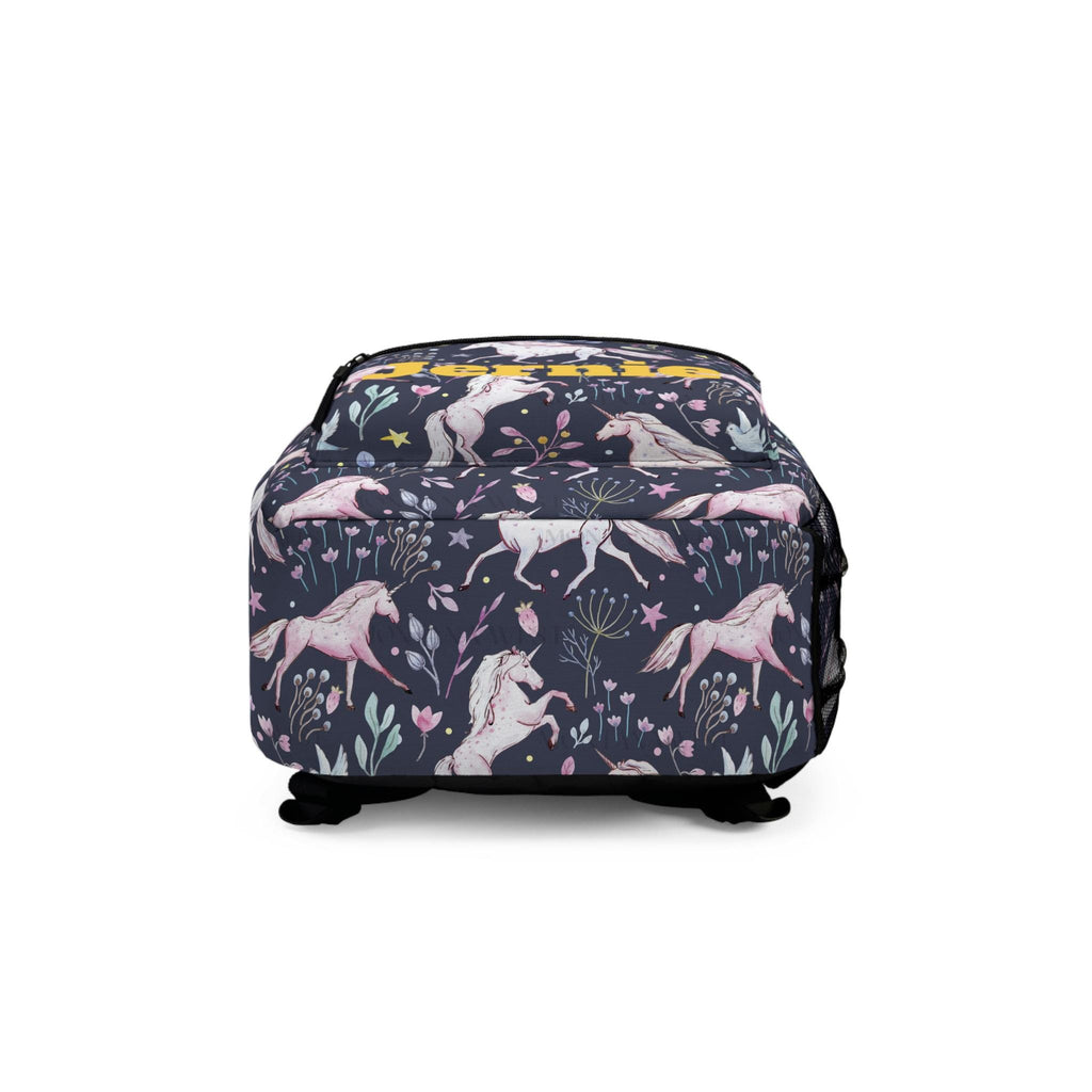 Personalized Unicorn Backpack for Girls, Custom Name Kids Bag Unicorns & Flowers