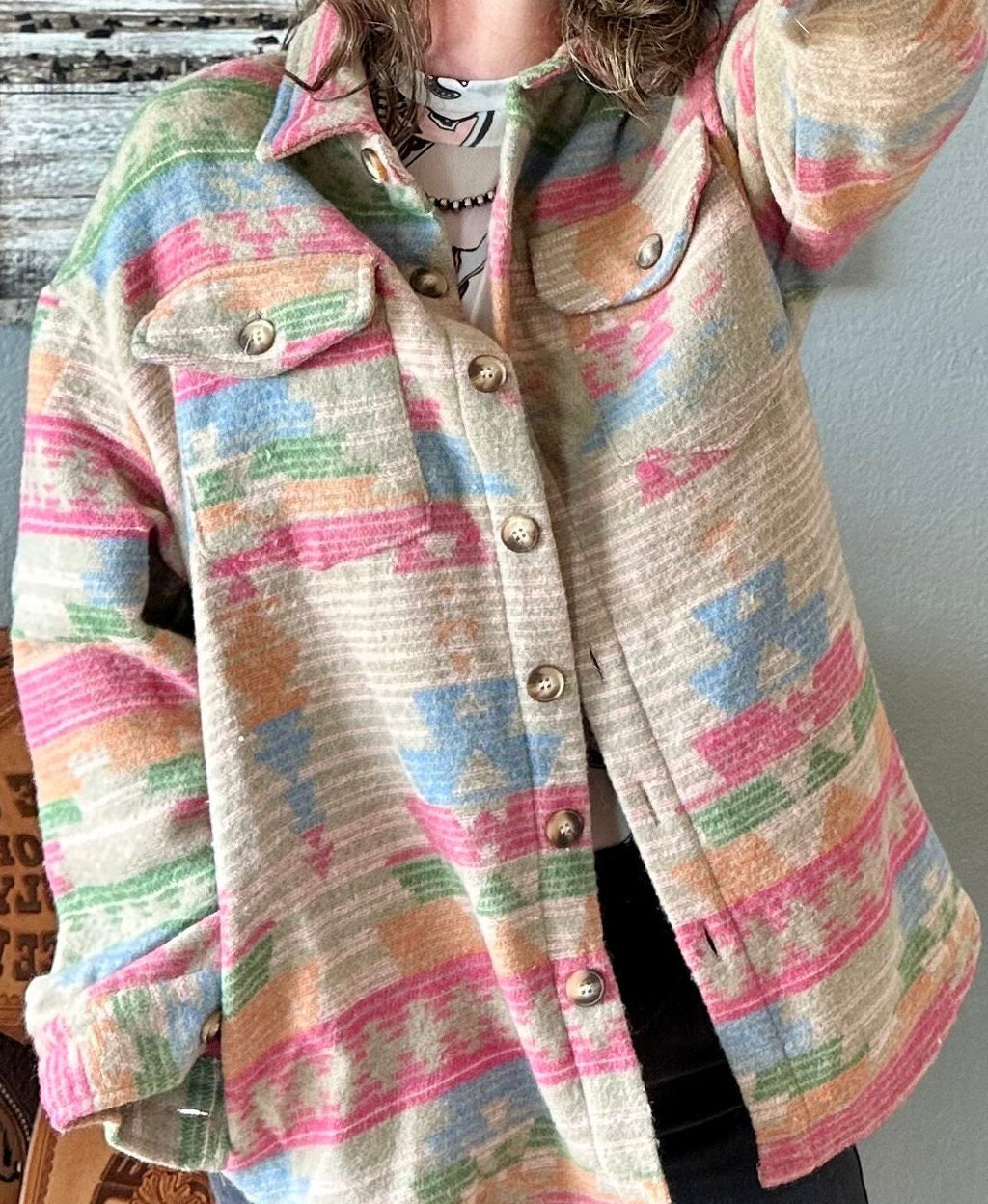 Stay Cozy and Stylish in this Pink Western Aztec Shacket!