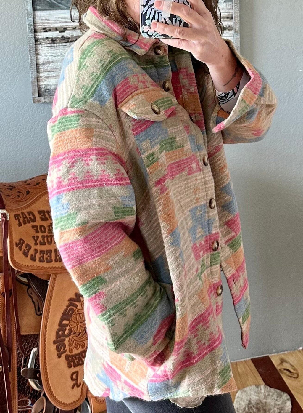 Pink Aztec Shacket: Southwestern Women's Shirt Jacket Large & XL