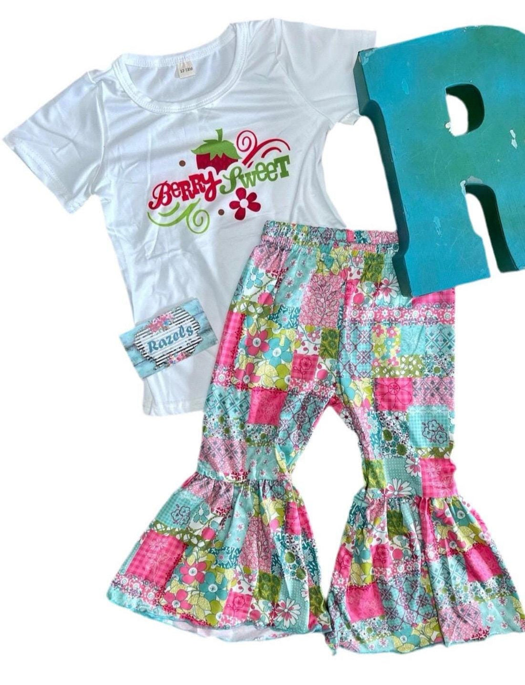Strawberry Patchwork Bell Bottoms Outfit: Berry Sweet 2T/3T