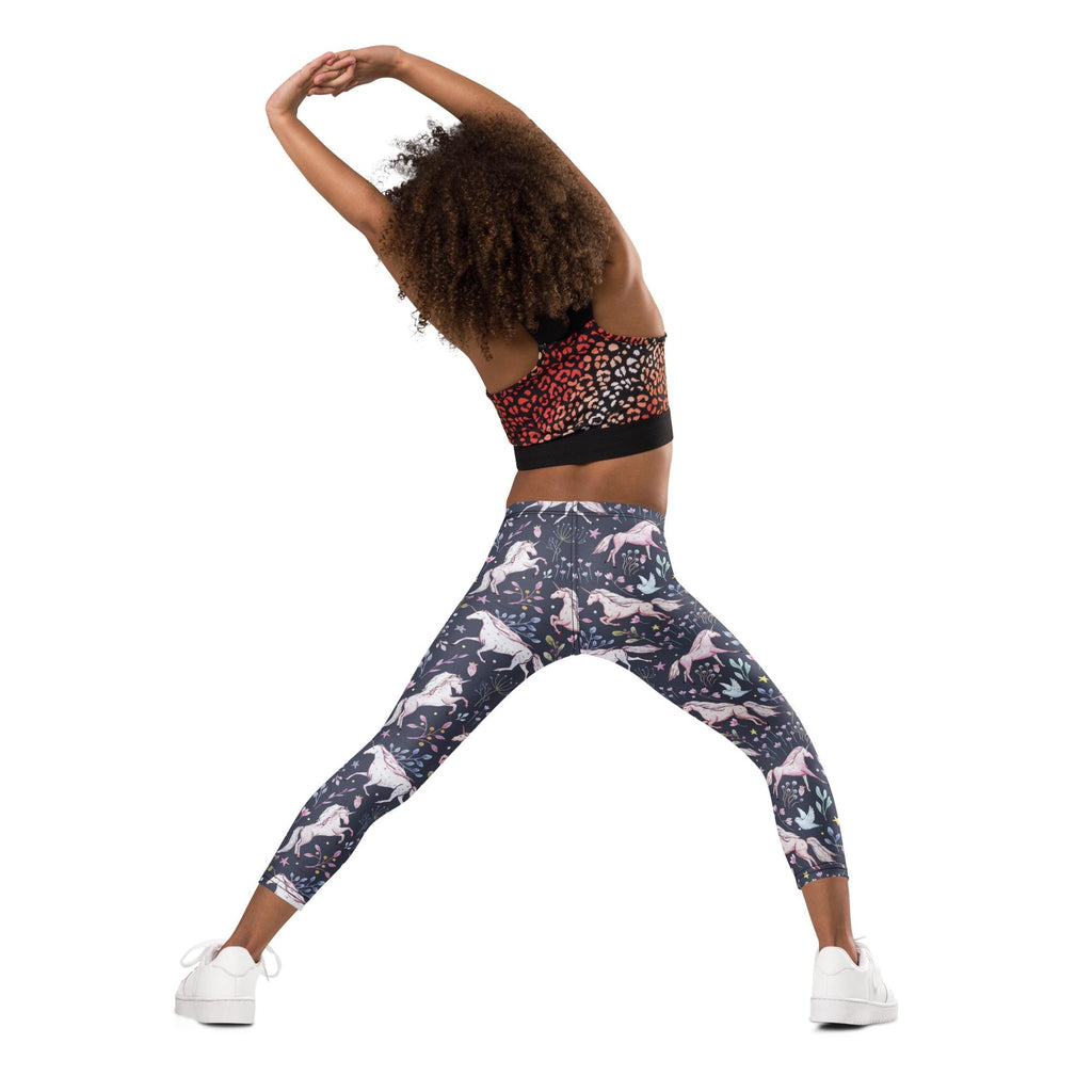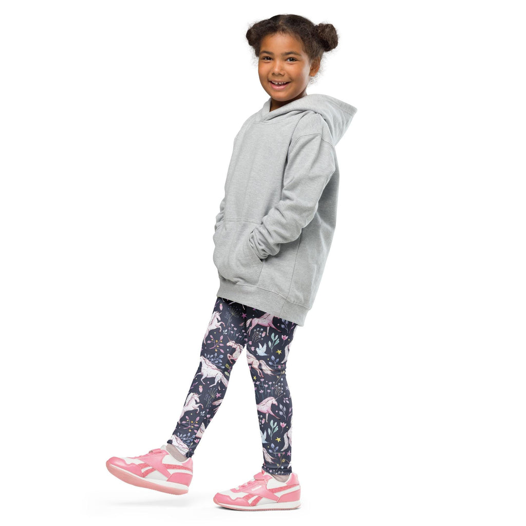 🦄 Unicorn Kid’s Leggings – Navy Floral Magic!