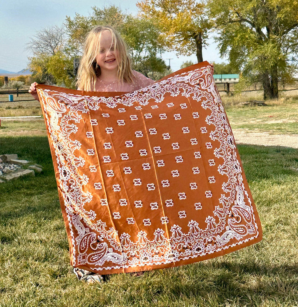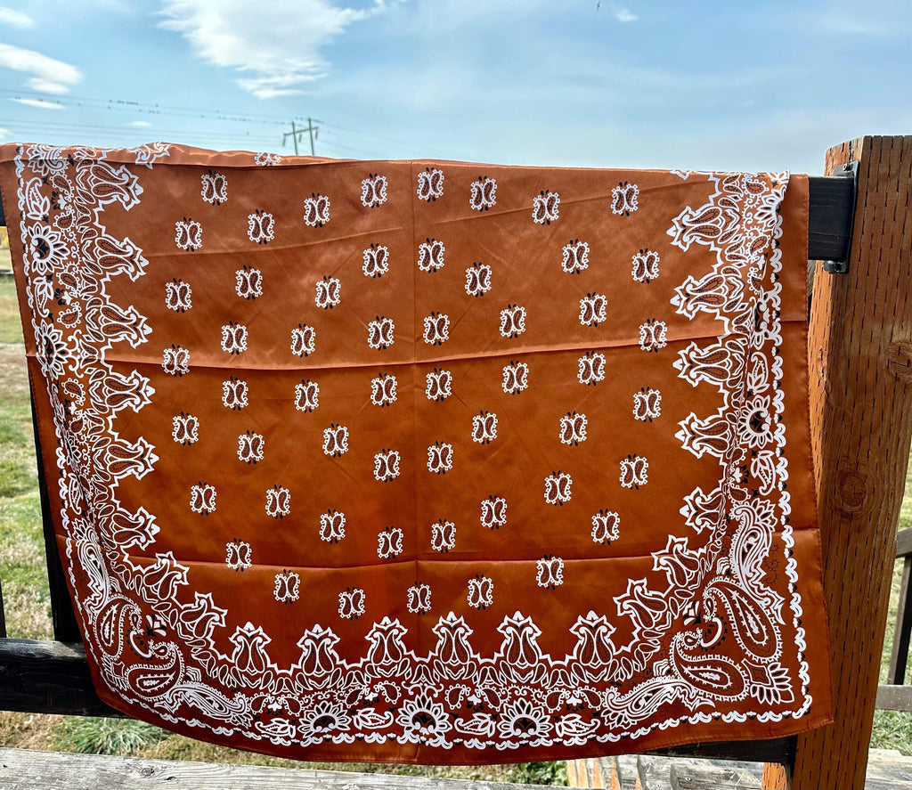 This vintage-inspired paisley wild rag is the perfect finishing piece for any cowgirl look. Designed in a rich golden-brown tone with an elegant paisley print, it adds instant Western charm whether youâre dressing up denim or styling a rodeo-ready outfit.