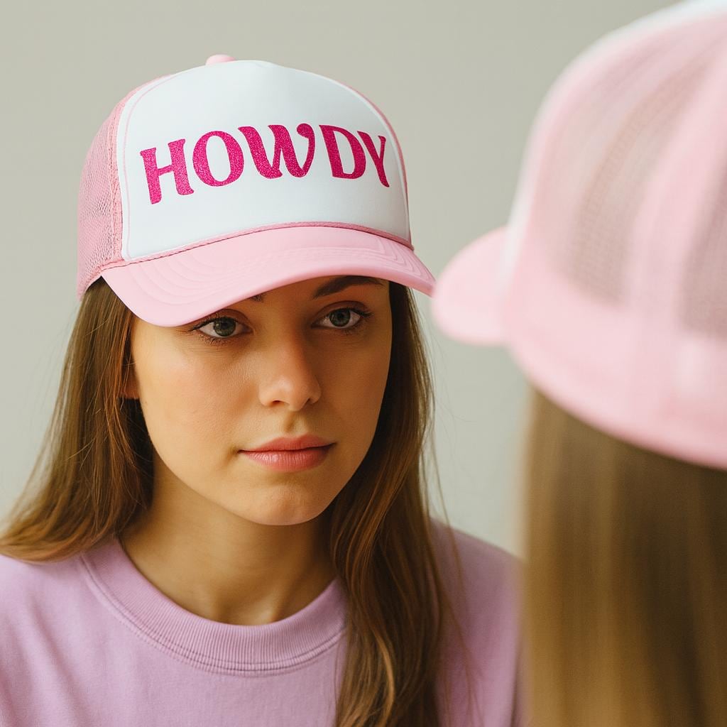 Backwards HOWDY Trucker Hat – Mirror-Readable Western Foam Cap, Fun Cowgirl Vibe