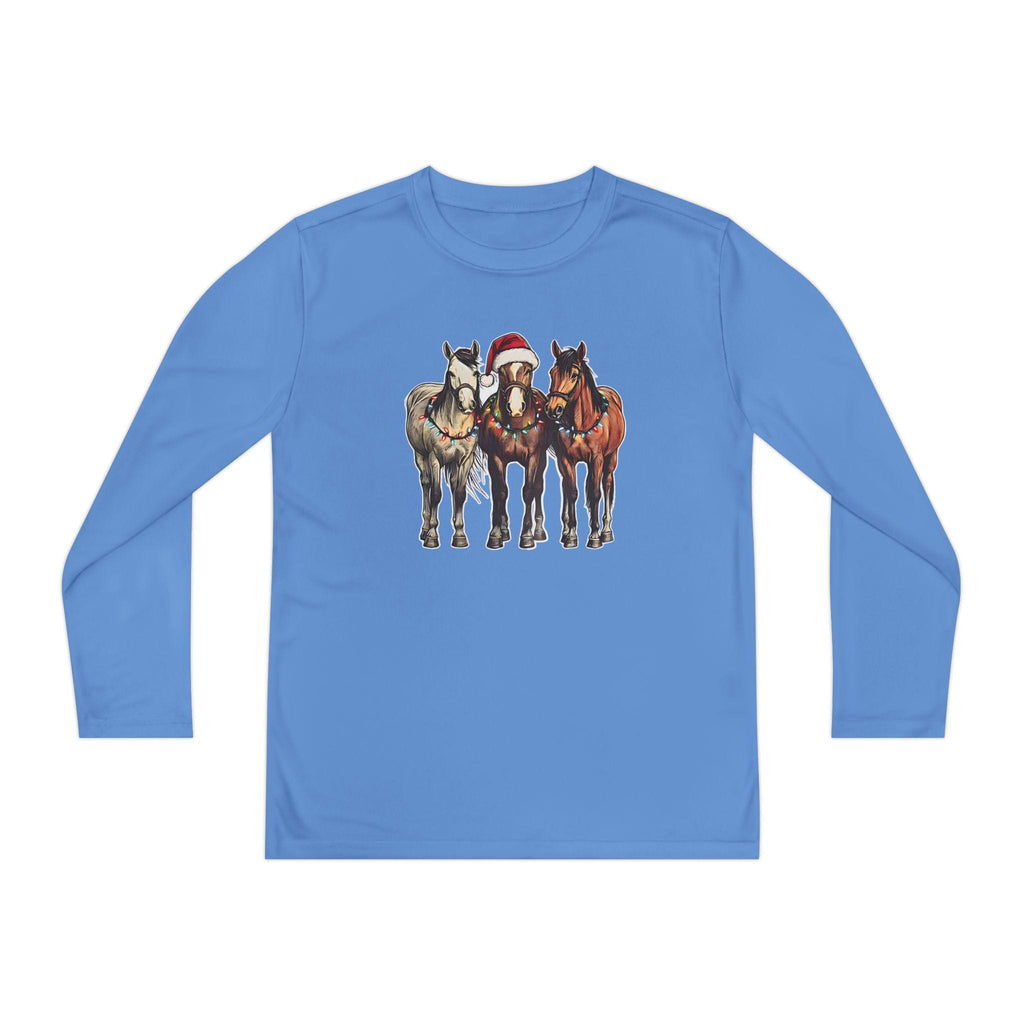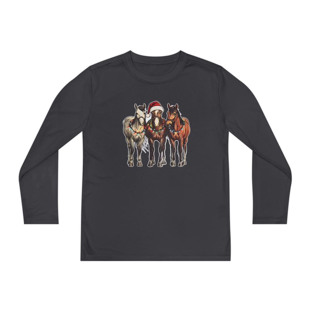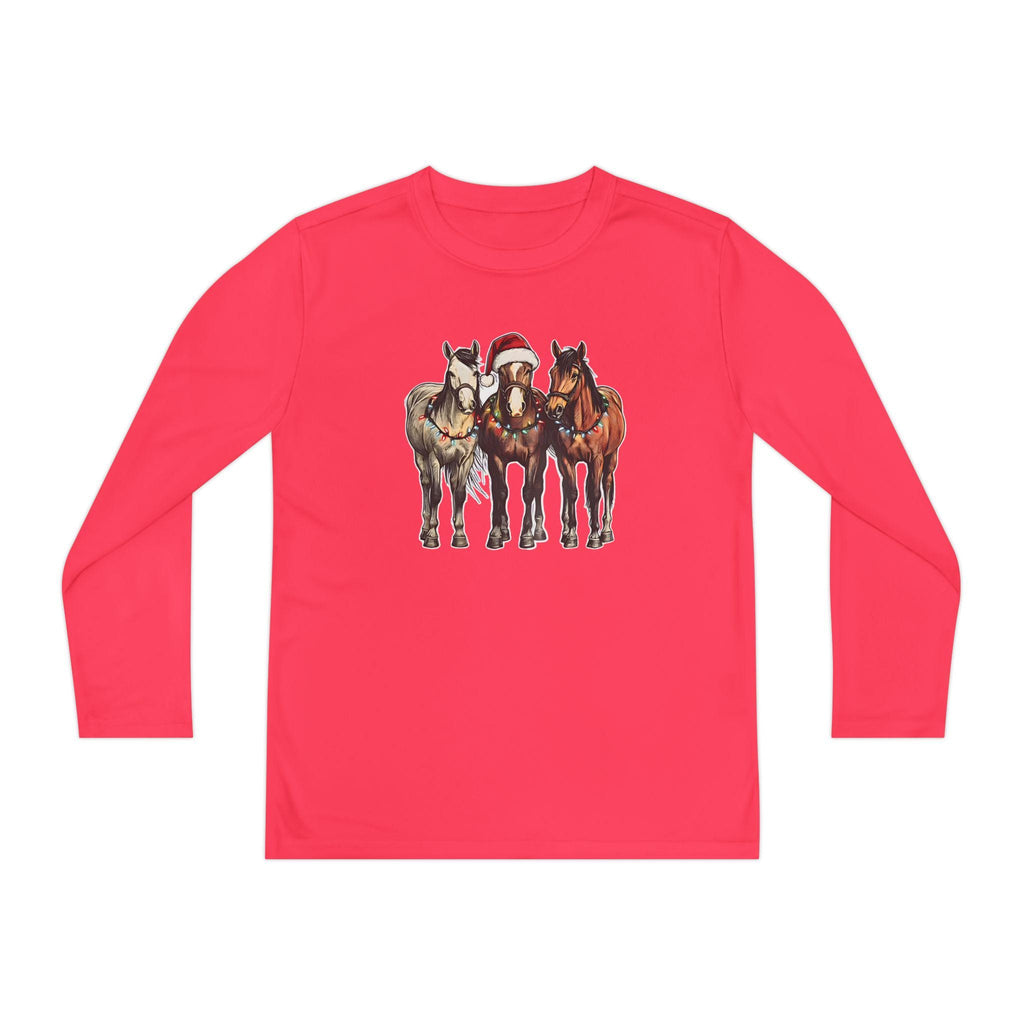 Kids Christmas Horse Long Sleeve Tee - Western Holiday Shirt 🎄🐴