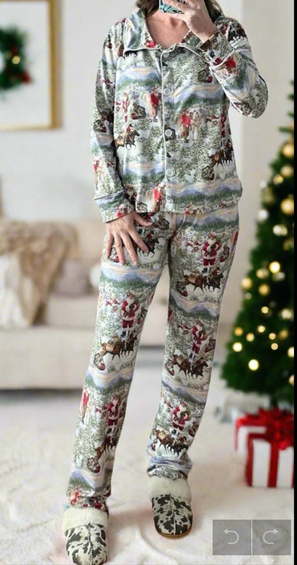 🎄 Saddle up for Christmas in the exact style I wear! These are the original Blue Cowboy Santa pajamas—same buttery-soft fabric and vibrant print as our current line, just made with a slightly higher rise, longer inseam, and a different waistband. They also match our new kids’ Blue Santa PJs perfectly!