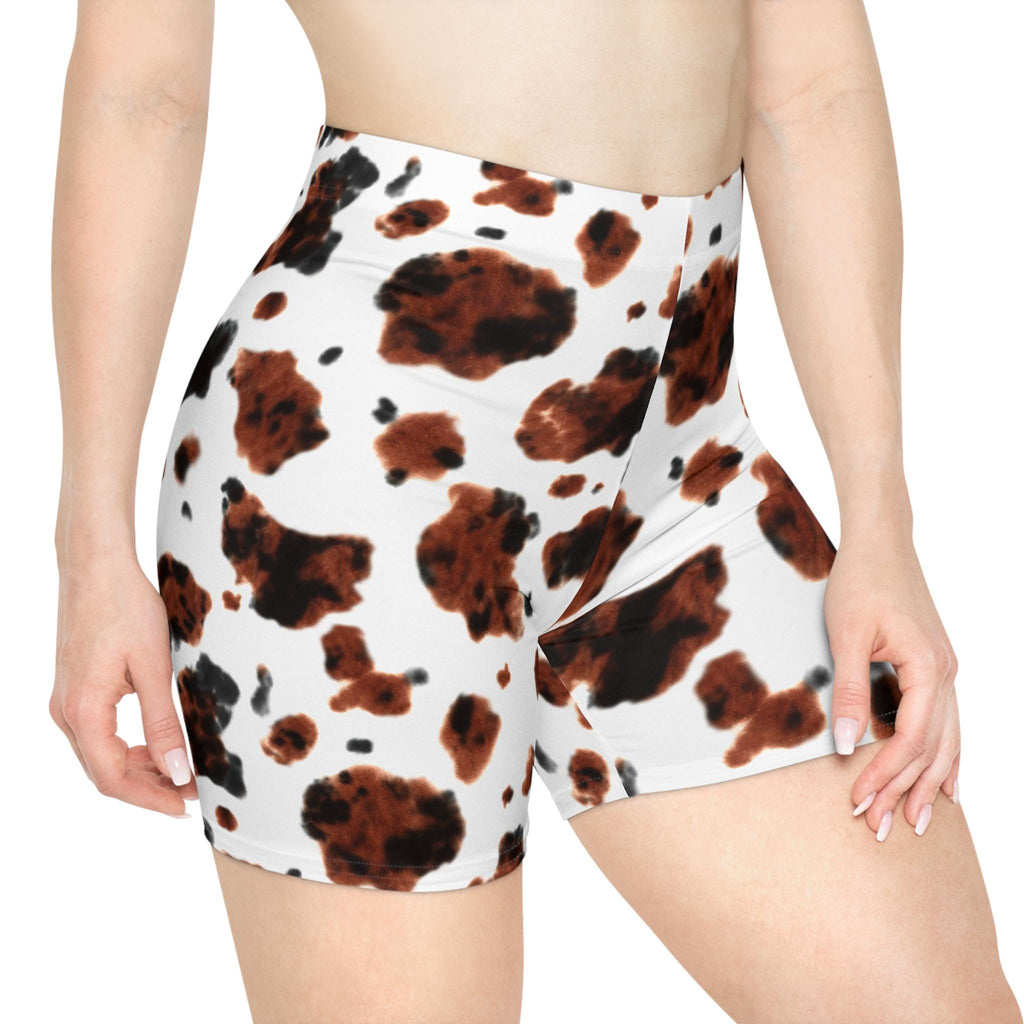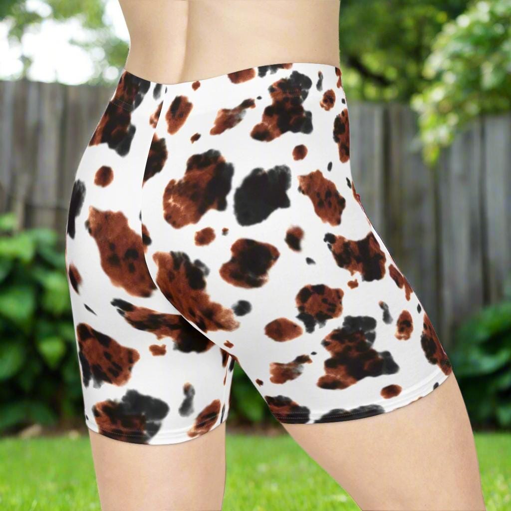 🐂 Wild & Western Biker Shorts – Brown Brindle Cowprint