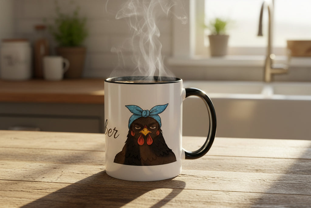 Feathers flying, coffee brewing, chickens clucking — just another morning for a true Crazy Chicken Lady. If your day starts with tending the flock (or at least thinking about it), this mug was made for you.