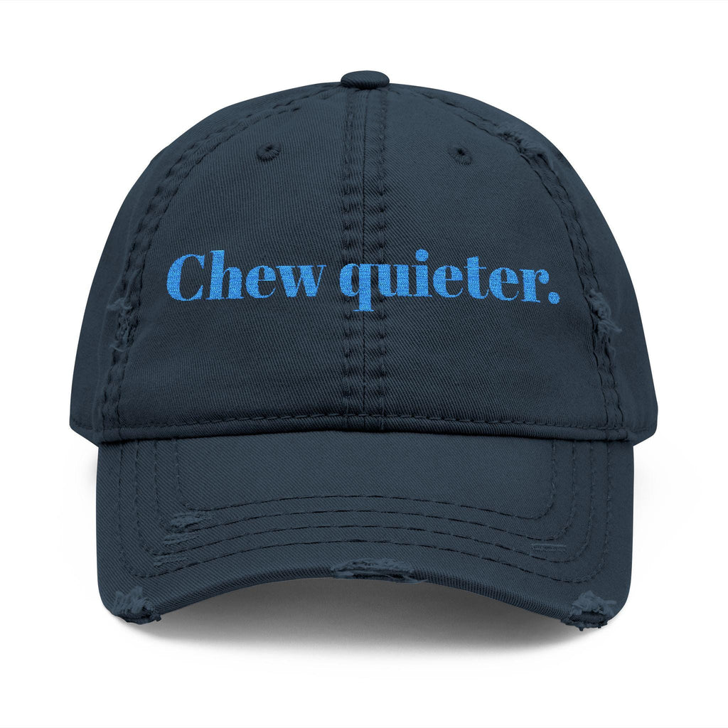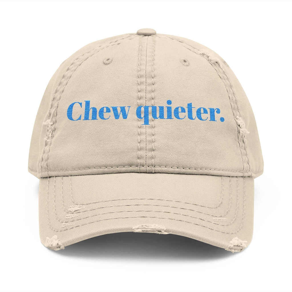 We’re all thinking it—now you can wear it. The CHEW QUIETER dad hat is here to bring laughs, side-eyes, and a whole lot of style. Whether you’re dodging judgment or proudly owning your snack breaks, this hat does the talking so you don’t have to.