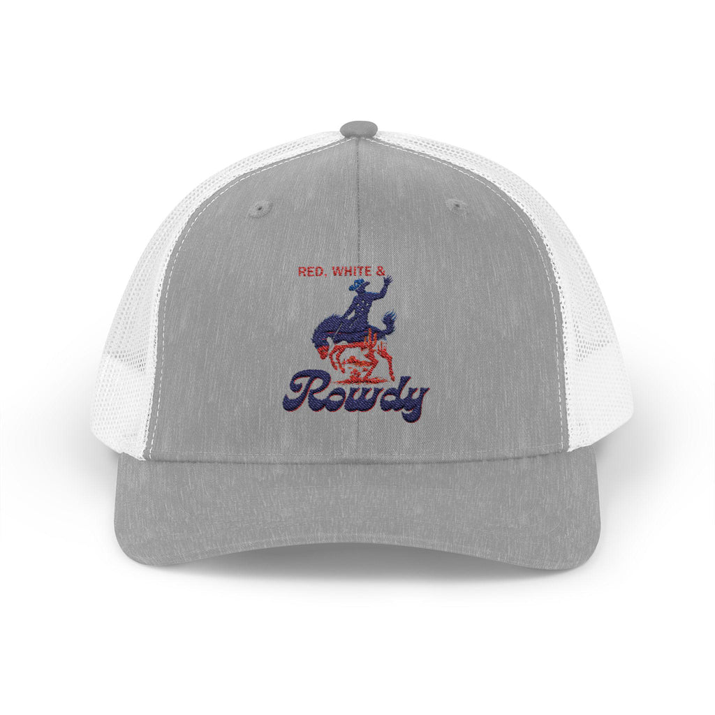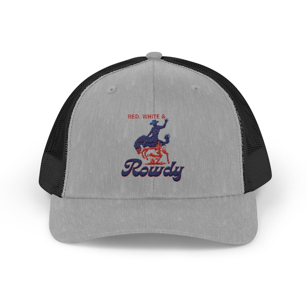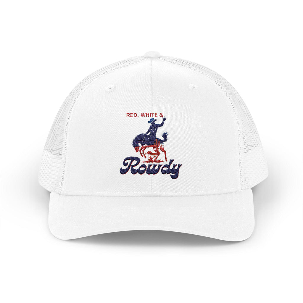 Whether you're kicking back at a 4th of July BBQ, cheering at the rodeo, or just living wild and free, this cap brings the vibes. The phrase "Red, White & Rowdy" is stitched right into the front, making it a true statement piece for cowboys, cowgirls, and freedom-lovers alike.