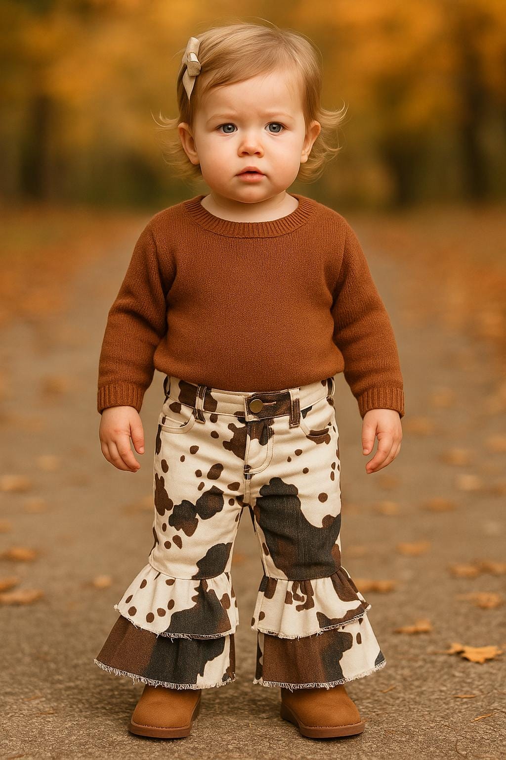 ๐ Cowprint Cowgirl Jeans โ Girls Western Bell Bottoms | Kids Fall Outfit | Christmas Gift Idea