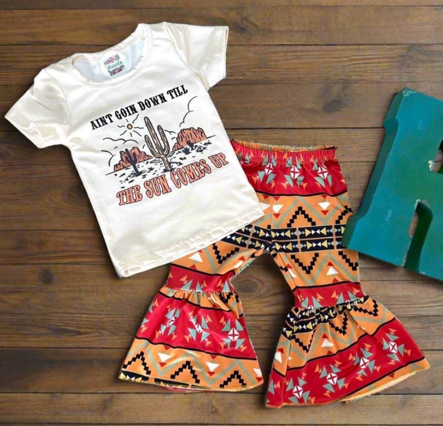 🌅 Ain’t Goin’ Down ’Til The Sun Comes Up – Bell Bottom Outfit Cowgirl Set (Girls 8/9 Only) | CLOSEOUT $10!