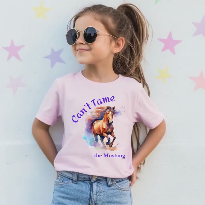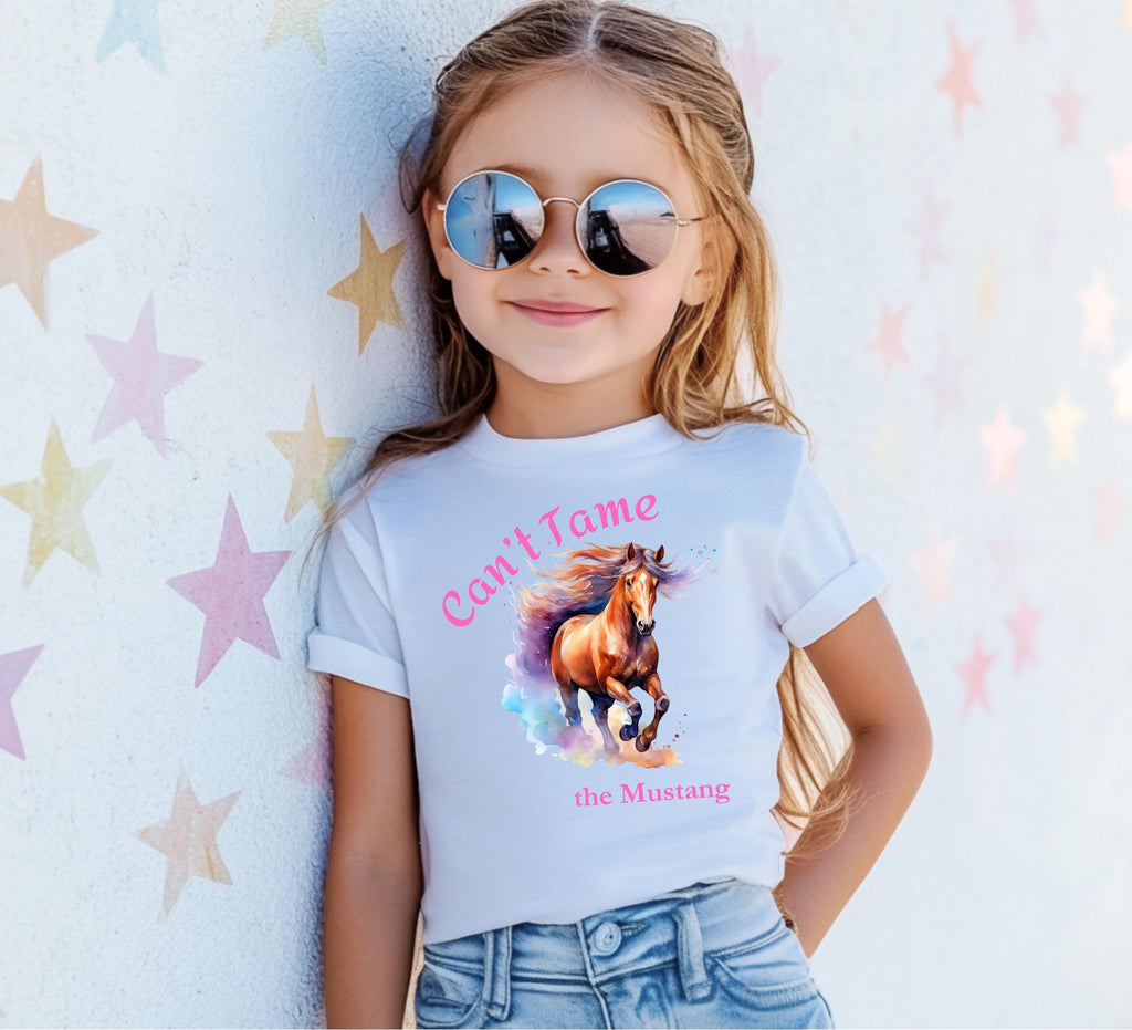 "Can’t Tame the Mustang" Girls Horse Tee - Let her run wild and free in our Can’t Tame the Mustang tee — a spirited design for the horse girl era 🐎💨