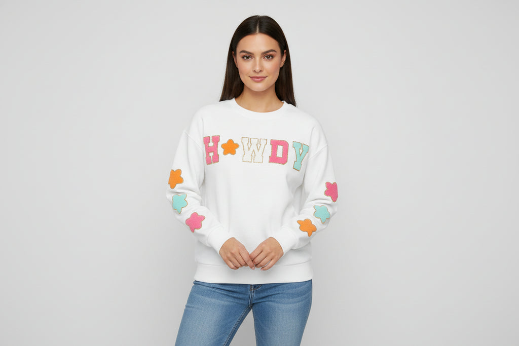 Howdy Glitter Patch Cowgirl Sweatshirt – Western Style on Sale!