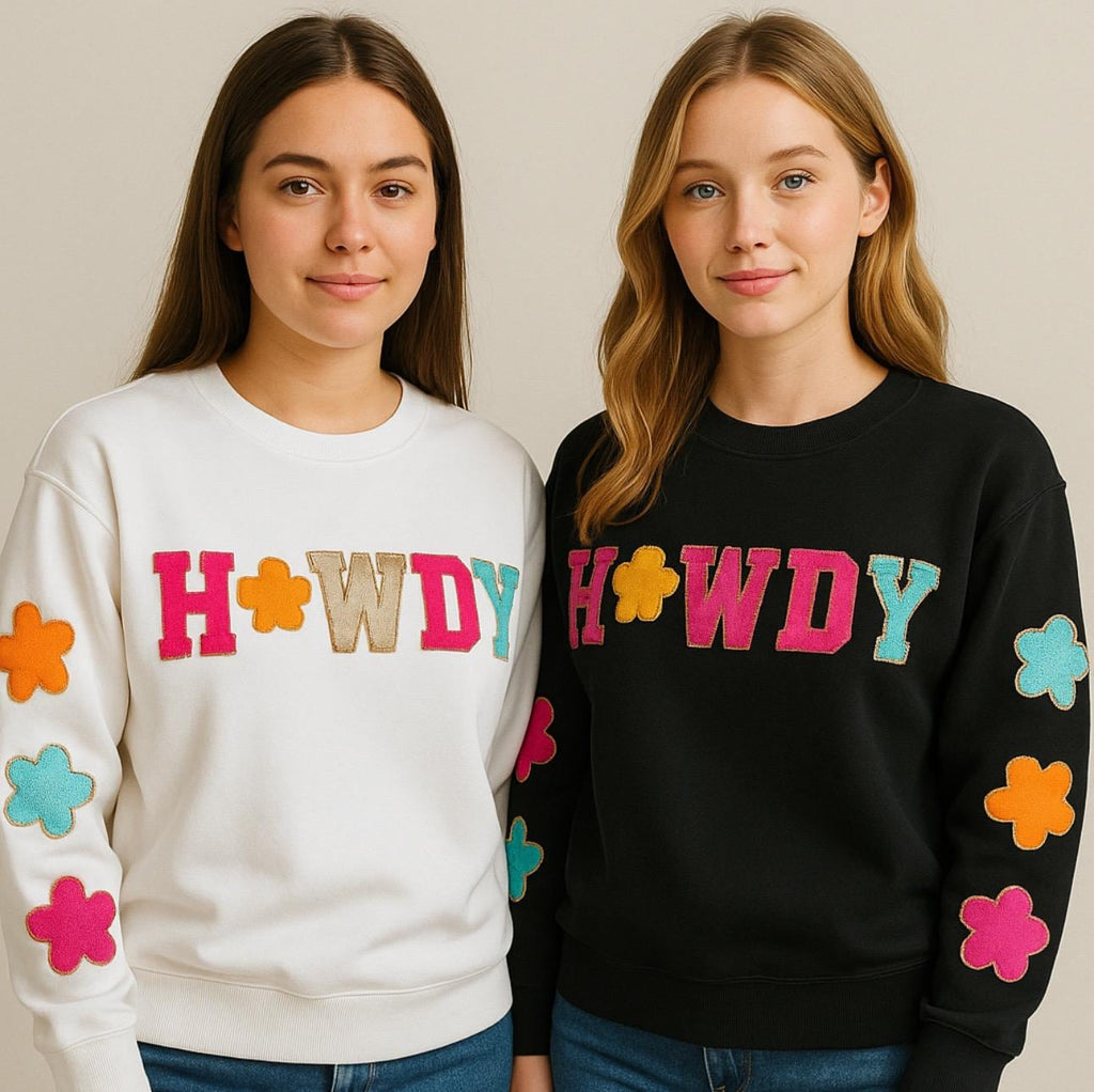 Howdy Sweatshirt | Cowgirl Sweatshirt with Western Glitter Patch | Cute Western Fashion | Gifts for Her