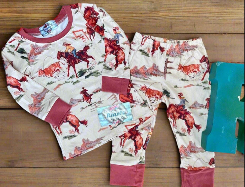🐴 Kids Cowboy Pajamas – Vintage Rodeo Print PJs 🤠