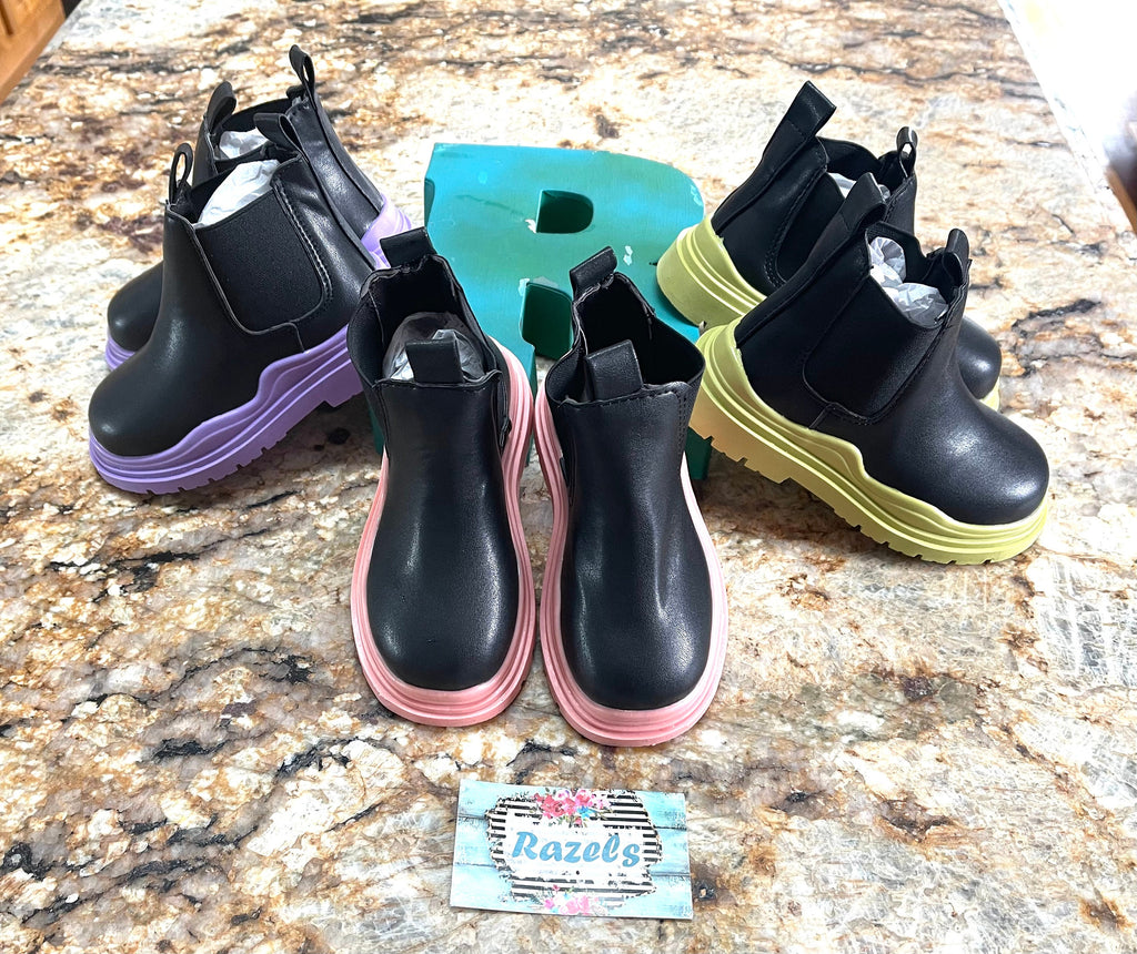 Oh my goodness! Make a splash with these absolutely fabulous black and GREEN boots, designed for both style and play! Featuring a vibrant pop of green and dependable waterproof soles, these boots are perfect for all your little one's adventures. These are Jernie's go-to-boots!