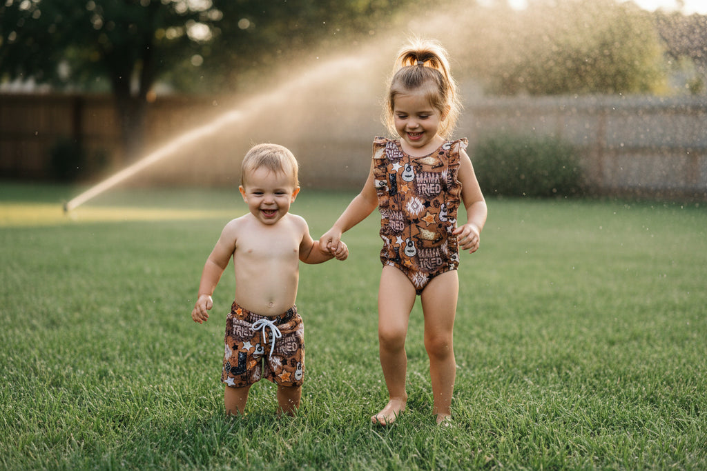 Mama Tried Matching Western Swimsuits – Sibling Swimwear Set 🤠🌵