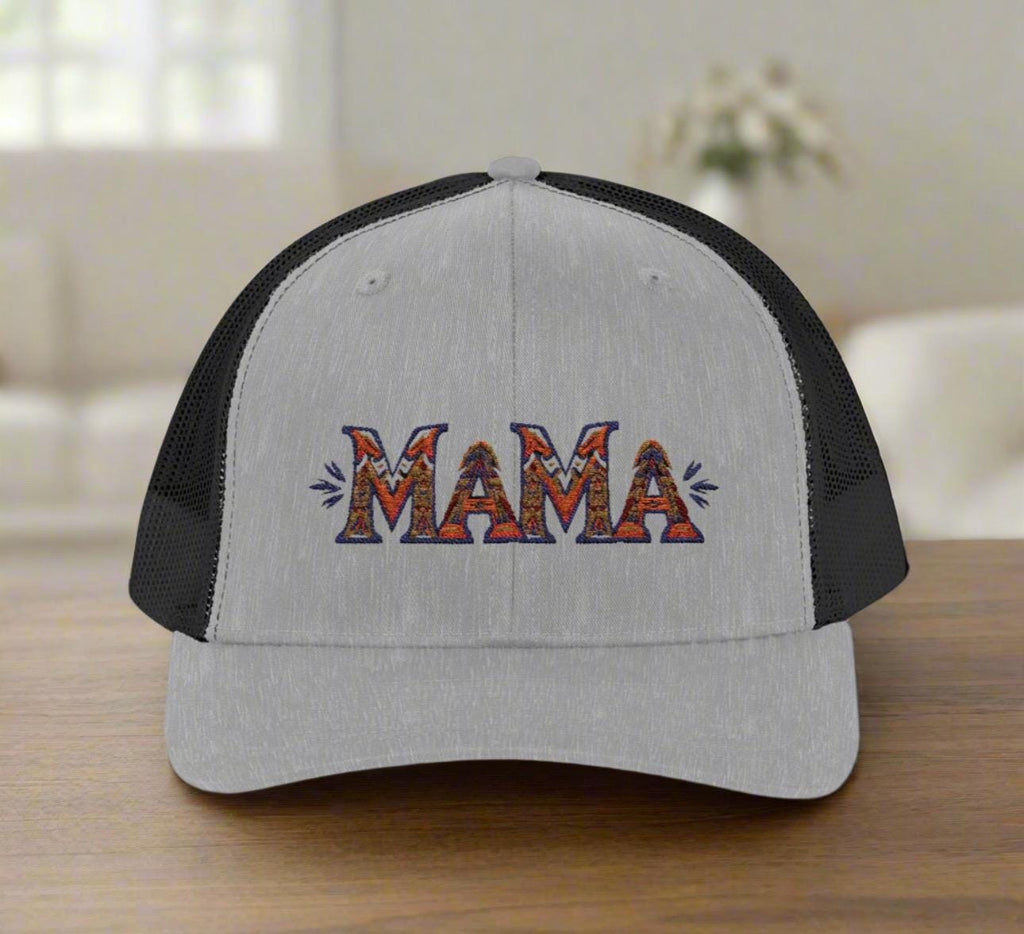MAMA Snapback Trucker Cap – Tribal Design Baseball Hat for Moms