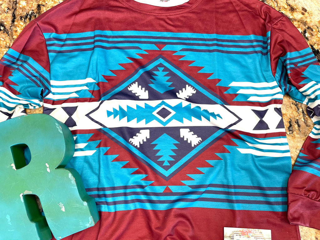 Maroon Aztec Sweatshirt: Western Cowgirl Lightweight Top