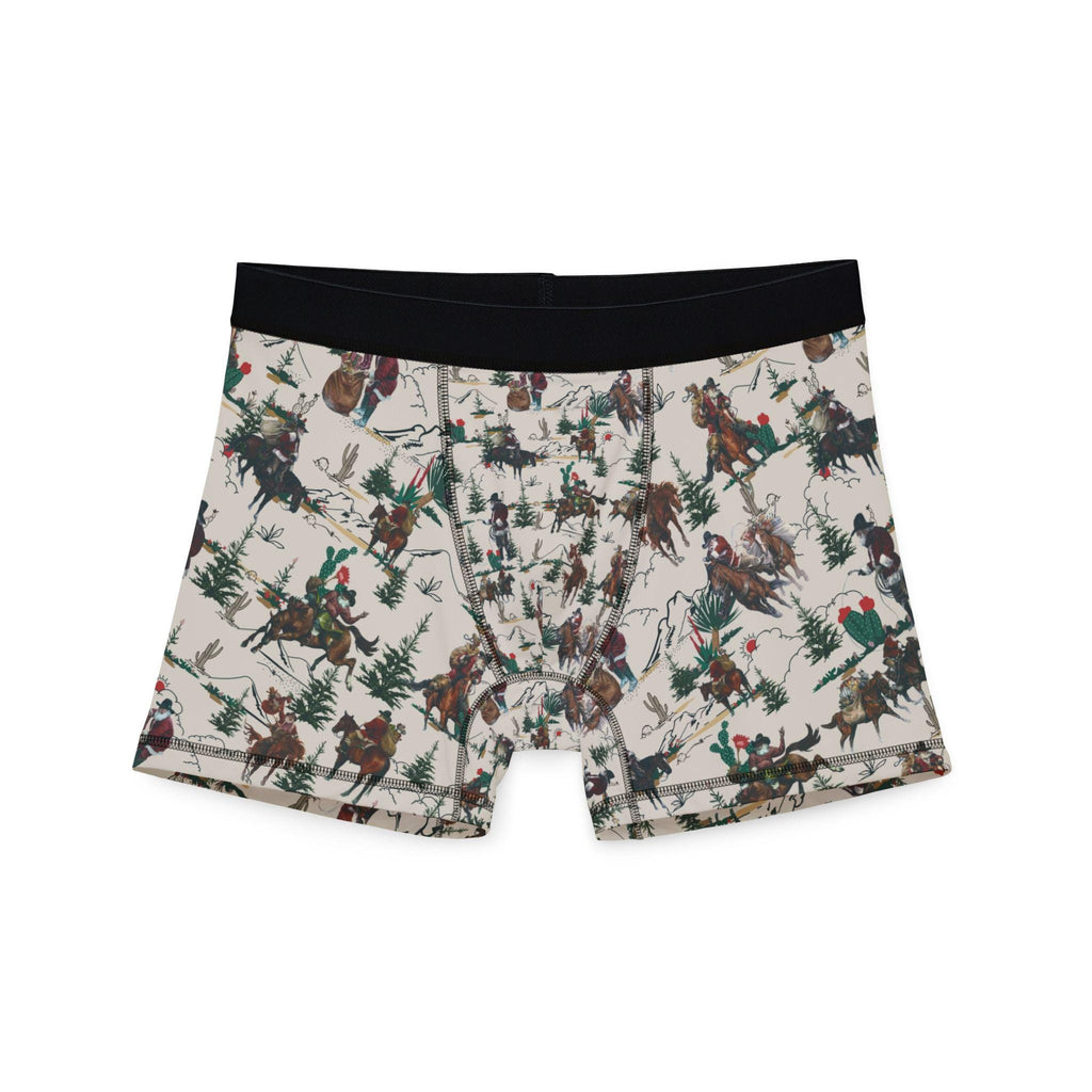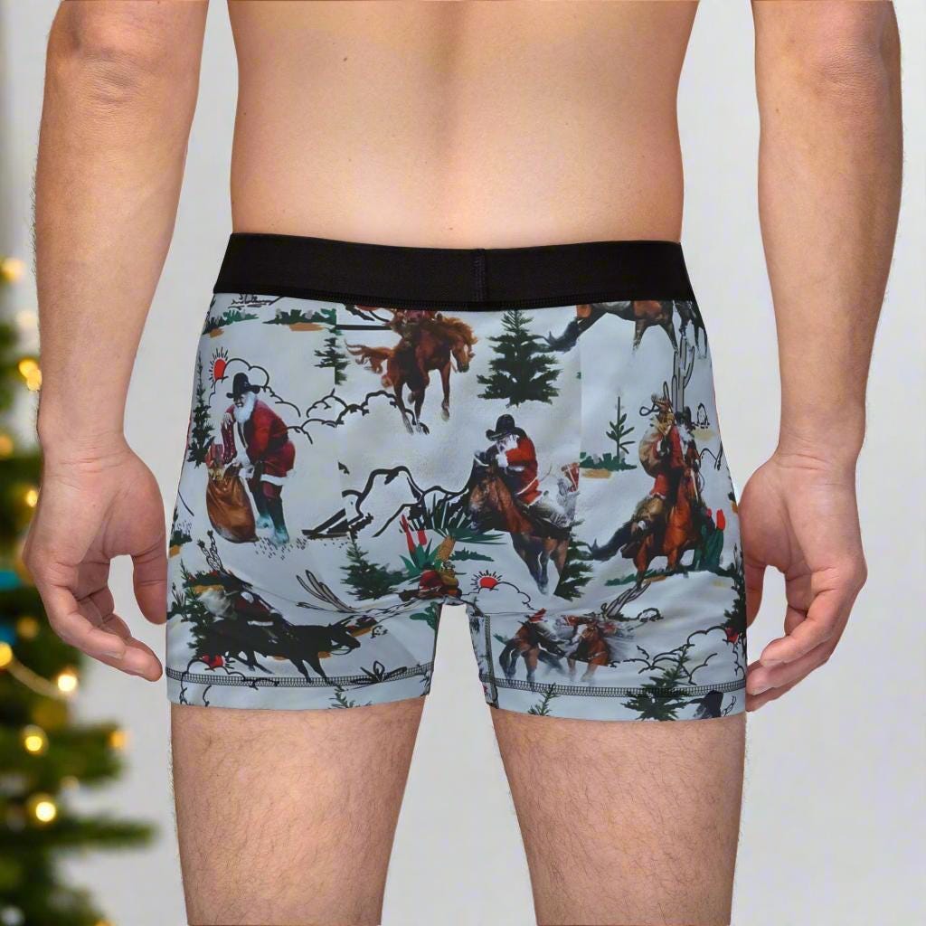 Saddle up for some serious holiday cheer! These Men’s Cowboy Santa Boxers are bringing the Christmas spirit with a bold Western twist. Featuring Cowboy Santa riding horseback (with a wild bronc or two in the mix), these festive undies are perfect for Christmas morning laughs, cozy nights in, or just spicing up your everyday basics. 🎄🐴