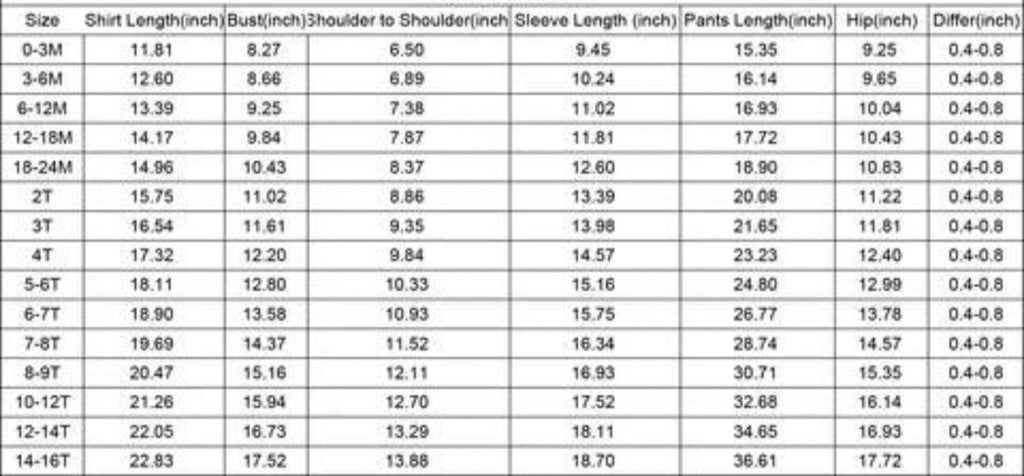 • Kids: 3/6 months through 14/16 (two-piece set)