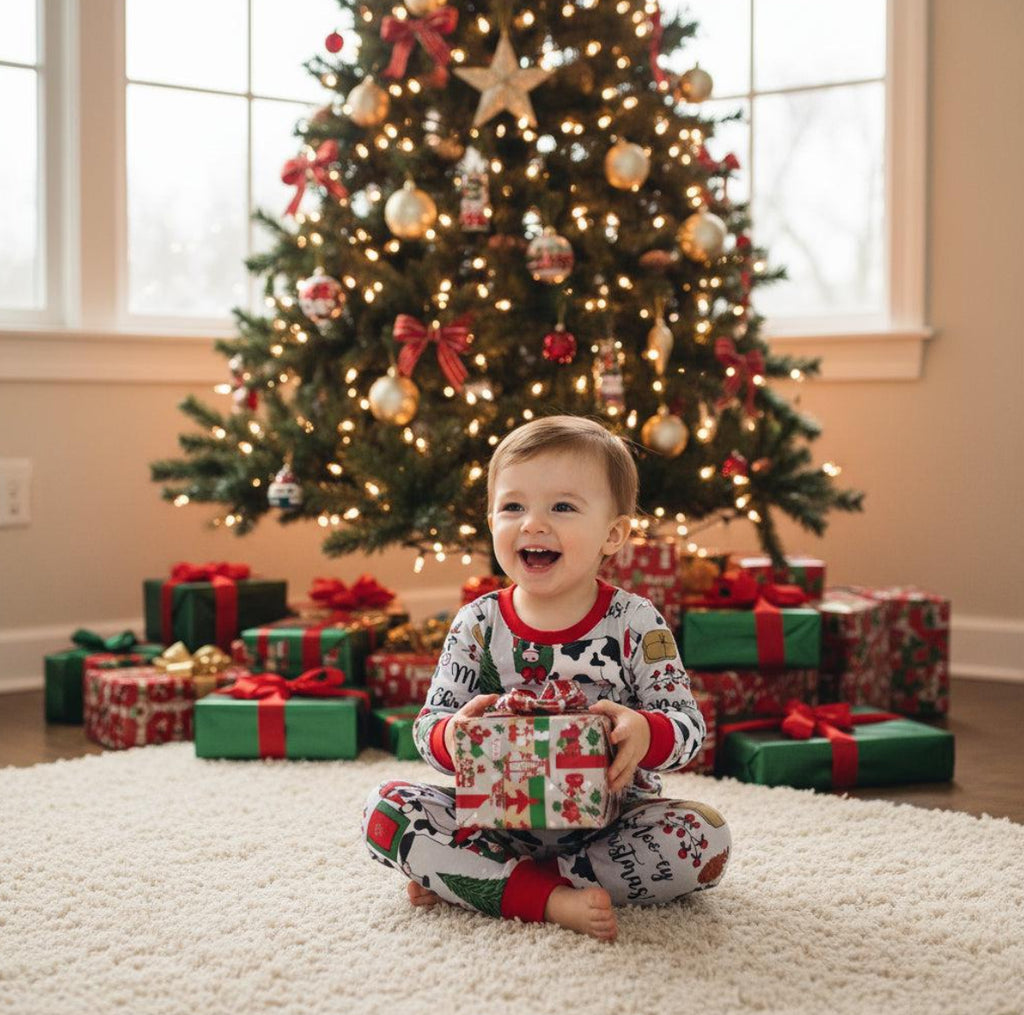 These festive matching pajamas bring holiday cheer and Western charm together in one cozy set. Decked out with Holstein cows in Santa hats and antlers, Christmas trees, wreaths, berries, and presents — they’re the perfect blend of playful and merry!