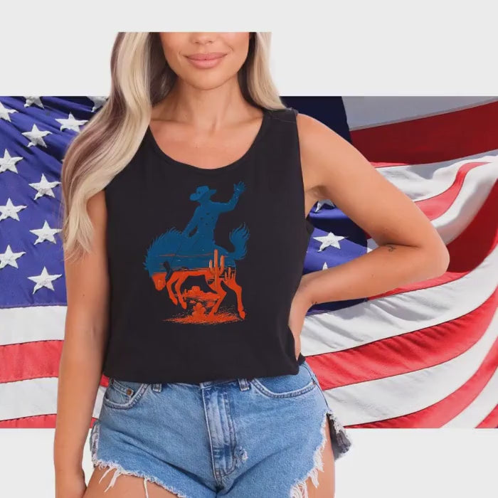 Patriotic Cowboy Tank Top – Bucking Horse Rodeo Vibes for the 4th of July 🤠🔥