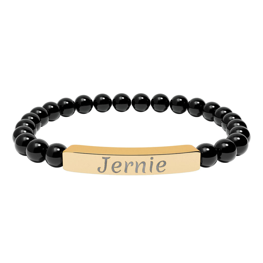 Personalized Engraved Bar Bracelet with Natural Stone Beads