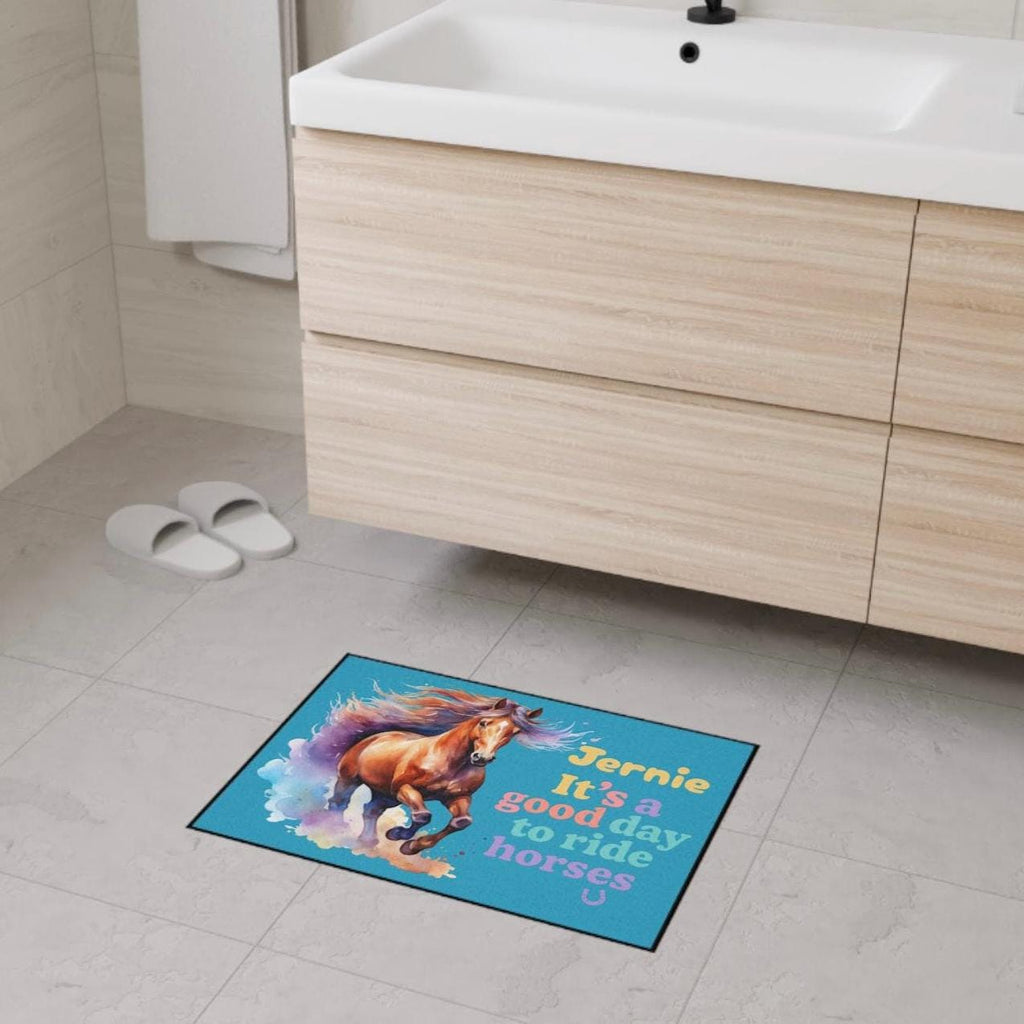 Giddy up, cowgirl! Add a splash of Western charm to any space with our Personalized Horse Lover Floor Mat featuring the phrase "It's a Good Day to Ride Horses" and a beautiful watercolor horse graphic—customized with your name for that perfect personal touch.