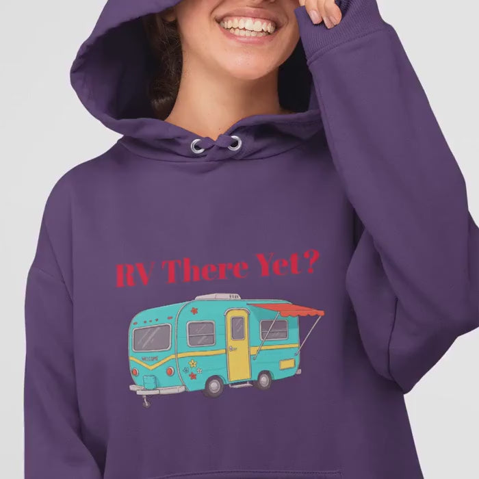 Our “RV There Yet?” hoodie features a retro camper design with a cheeky phrase every road-tripper knows well — because half the fun is the journey.